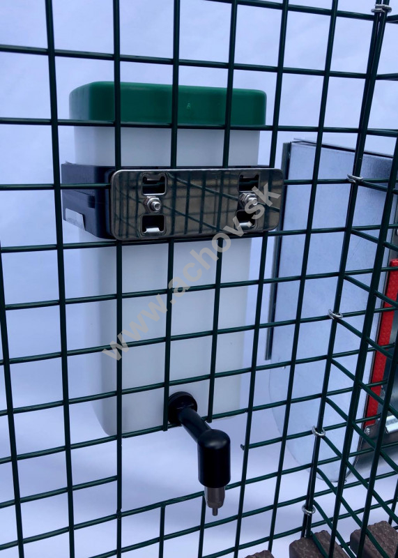 Držiak na 1l. napájačku plastový s kovovým uchytením. Držiak je z pevného, tvrdeného, čierneho plastu. Má hranatý tvar s rozmerom 9cm x 9cm. Pevne obopína napájačku, ľahko sa zachytáva na klietku. V súvisiacich produktoch nájdete vhodné napájačky k držiaku. Fotky v galérií sú ilustračné.